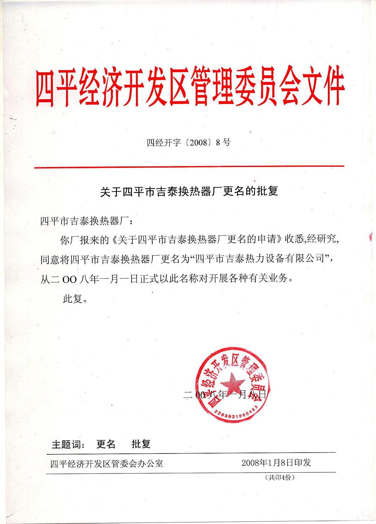 改制更名批復
